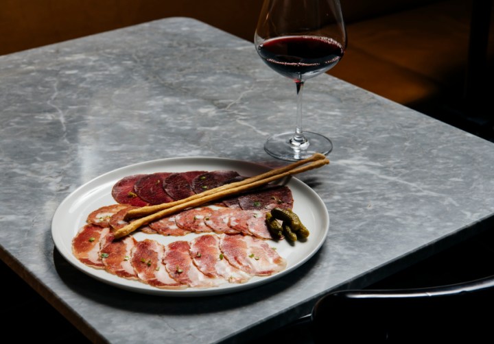 The food offering is largely small share plates, with a strong French and Italian influence. Meatballs come in the form of veal and porcini polpette with polenta and roasted mushrooms. Diners will also find oysters with champagne mignonette; baked goats cheese with honey and flatbread; as well as a Wagyu tonnato – thinly sliced beef with tuna mayonnaise and fried capers. Tonnato is usually made with beef from young, male dairy-cow breeds, rather than the highly marbled Japanese cattle reared specifically for eating.